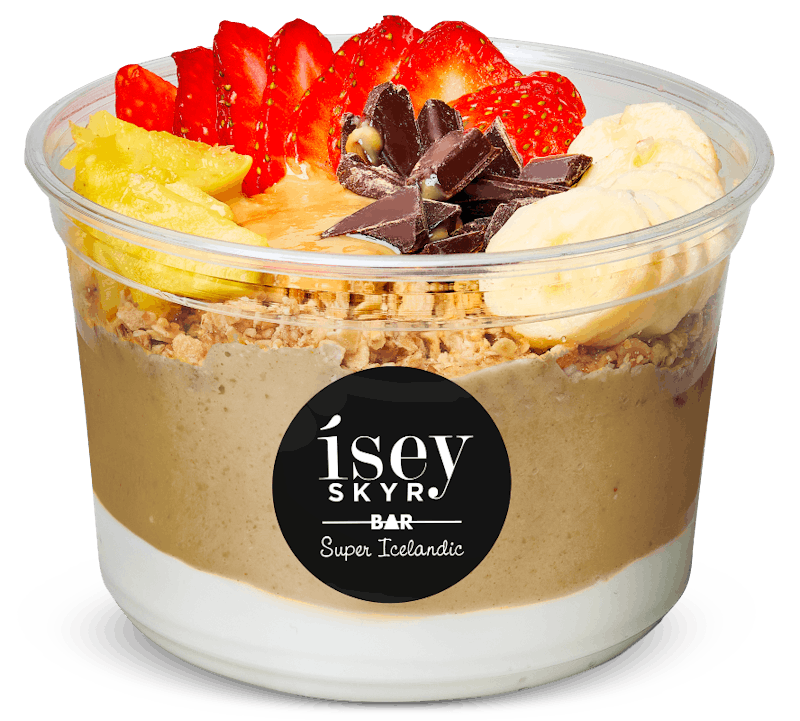 ON THE TOP: Granola, strawberry, banana, peanut butter, pineapple, dark stevia chocolate