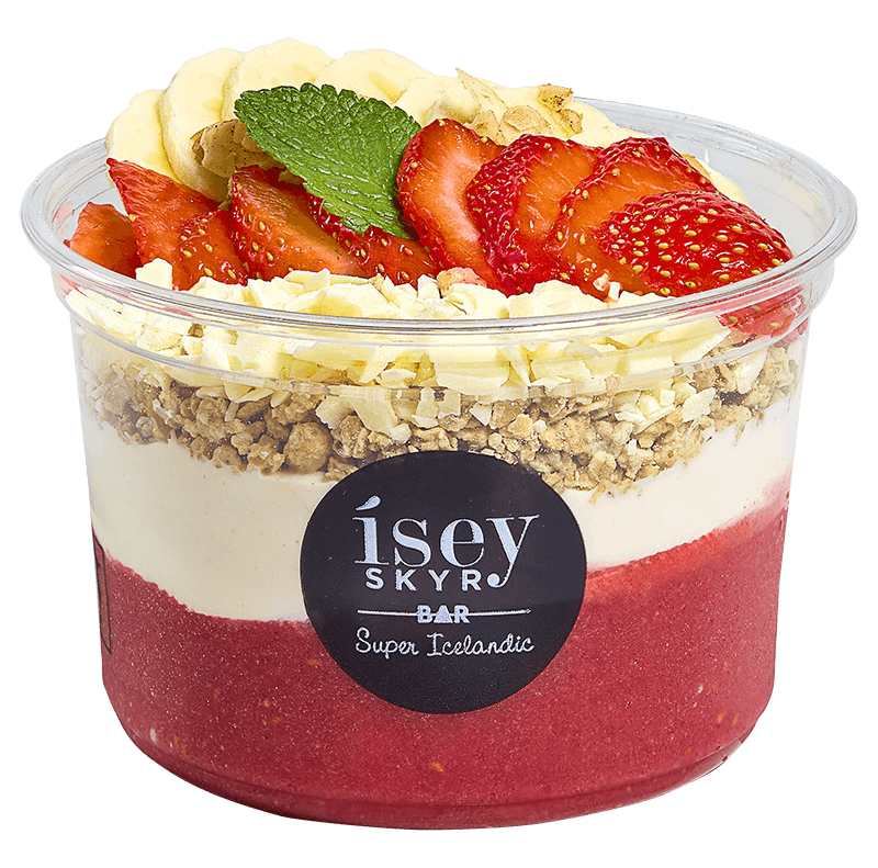Á TOPPNUM: Granóla, jarðarber, hvítt súkkulaði, banani, möndluflögur, minta